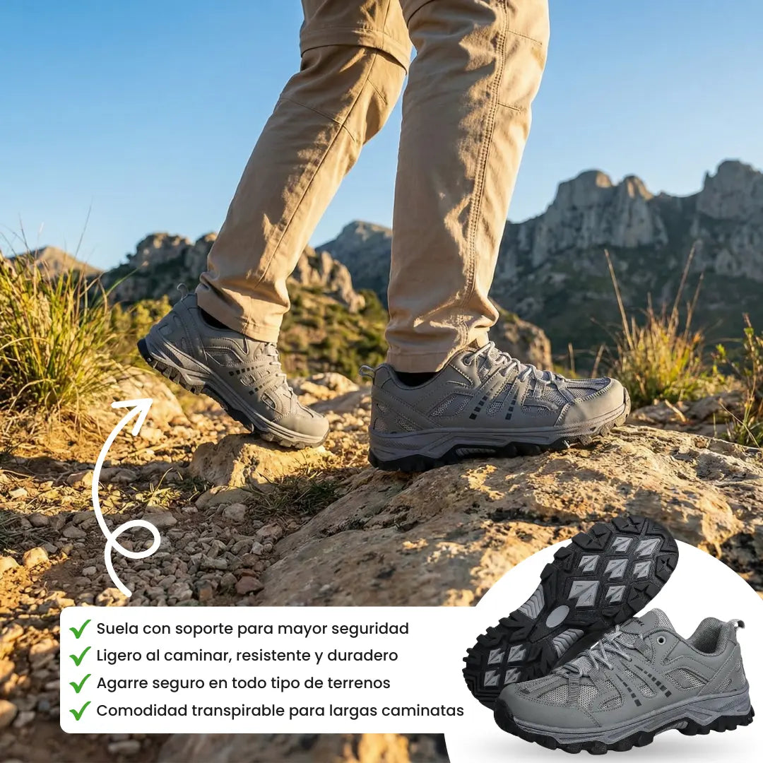 Estos zapatos de senderismo están diseñados para ofrecer mayor estabilidad en terrenos irregulares. La suela con tracción reforzada proporciona agarre seguro en diferentes superficies, ayudándote a caminar con más confianza.